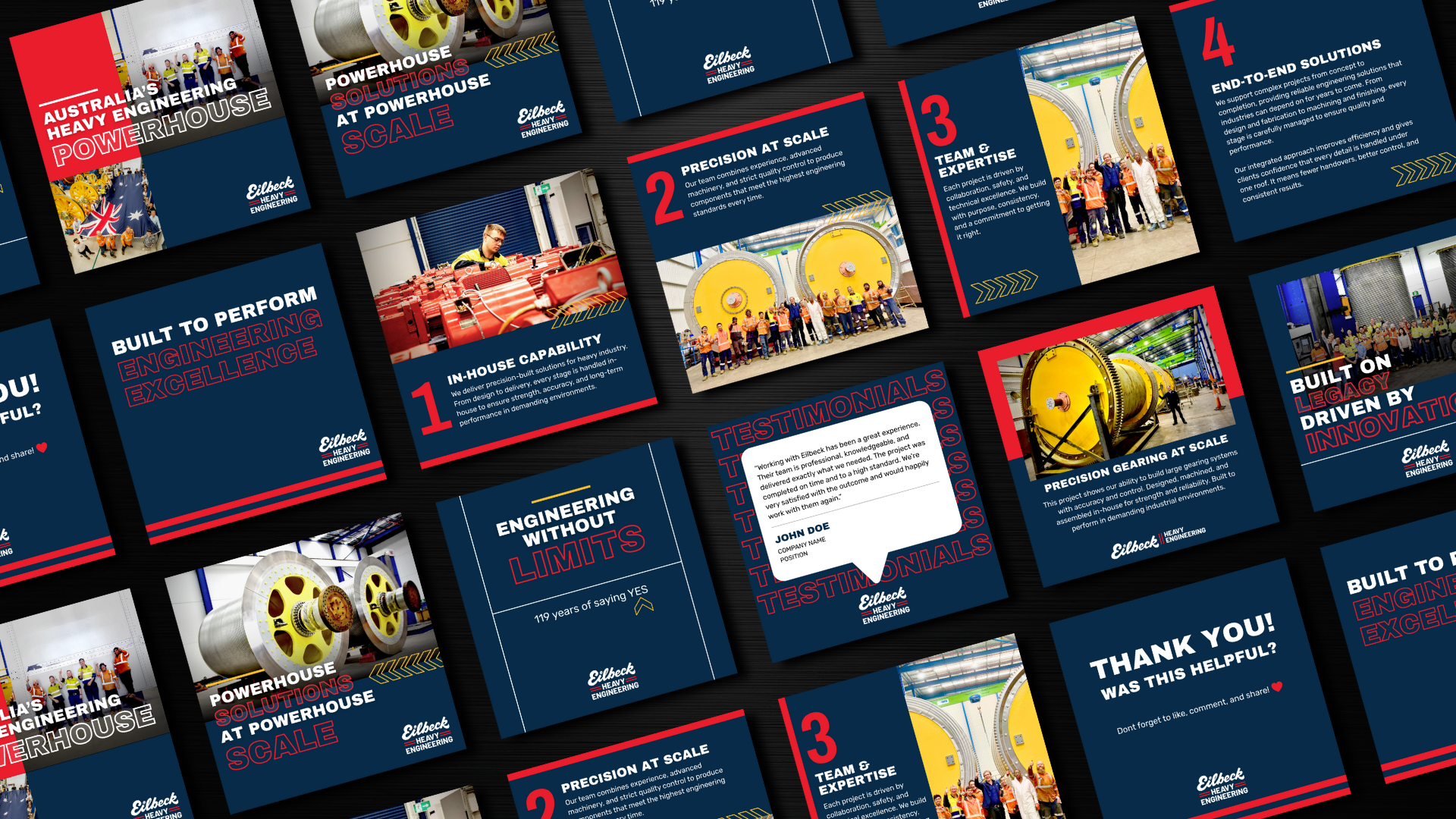 We refined the logo and developed a strong visual language, building around the idea of ‘powerhouse integrated engineering’, leveraging the advantages of offering several large scale manufacturing processes within the business.